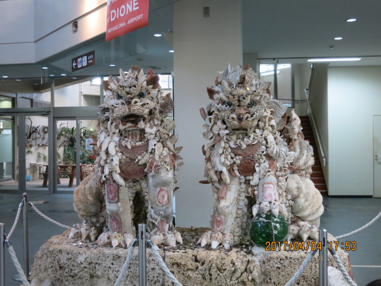宮古空港にある綺麗なシーサーを見つけて、宮古島にきたんだ・・と感激しました。空港は本当にこじんまりとまとまった施設で、迷うことは全くありません。レンタカー会社、案内所もすぐ目の前にあり、とても便利でした。空港の位地は宮古の中心地に近く、便利でした。