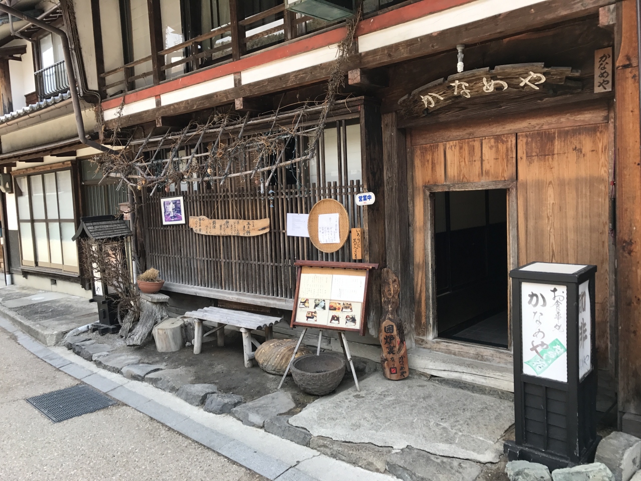 奈良井宿にある飲食店で、信州そばや五平餅などが味わえます。五平餅は一串に3つありましたが、これを食べればもうお腹いっぱいという感じで、ボリュームがありました。みそだれ?くるみだれ?がまたまろやかで美味しかったです。