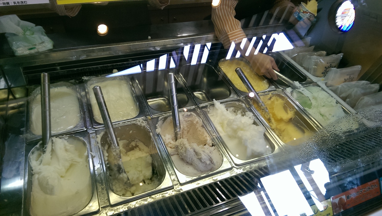 レモン、みかん、きよみ、他にも土地の銘柄のものがいろいろ。選ぶって楽しいですね。5時閉店の間際に滑り込み夕焼けの海を見ながらのジェラート休憩、とくにはまったきよみ味は最高でした。