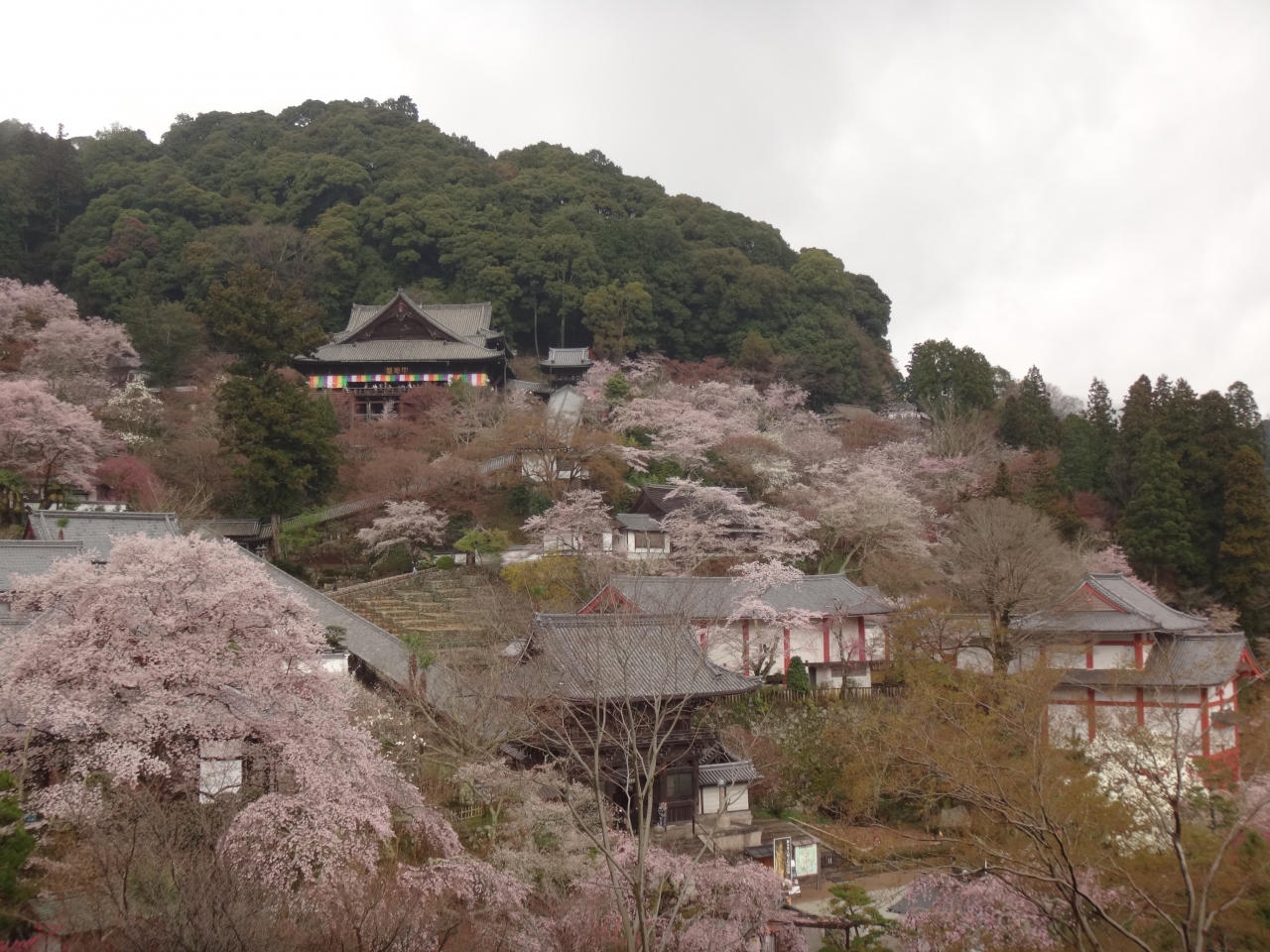 ここからは、長谷寺境内を一望することができ、満開の桜のなかに浮かびあがるように建造物を見ることができました。