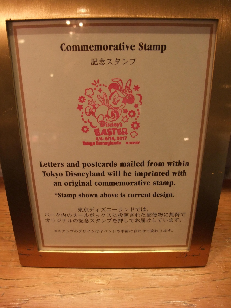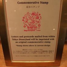 ワールドバザール内にある文房具などが販売しているショップでは、ステッカーやポストカードが販売しており、購入後ショップ内のテーブルでイベントデザインのポストカードなどにメッセージなどを書いてパーク内にあるポストに投函するとイベントごとの記念スタンプを押して届けてくれます。