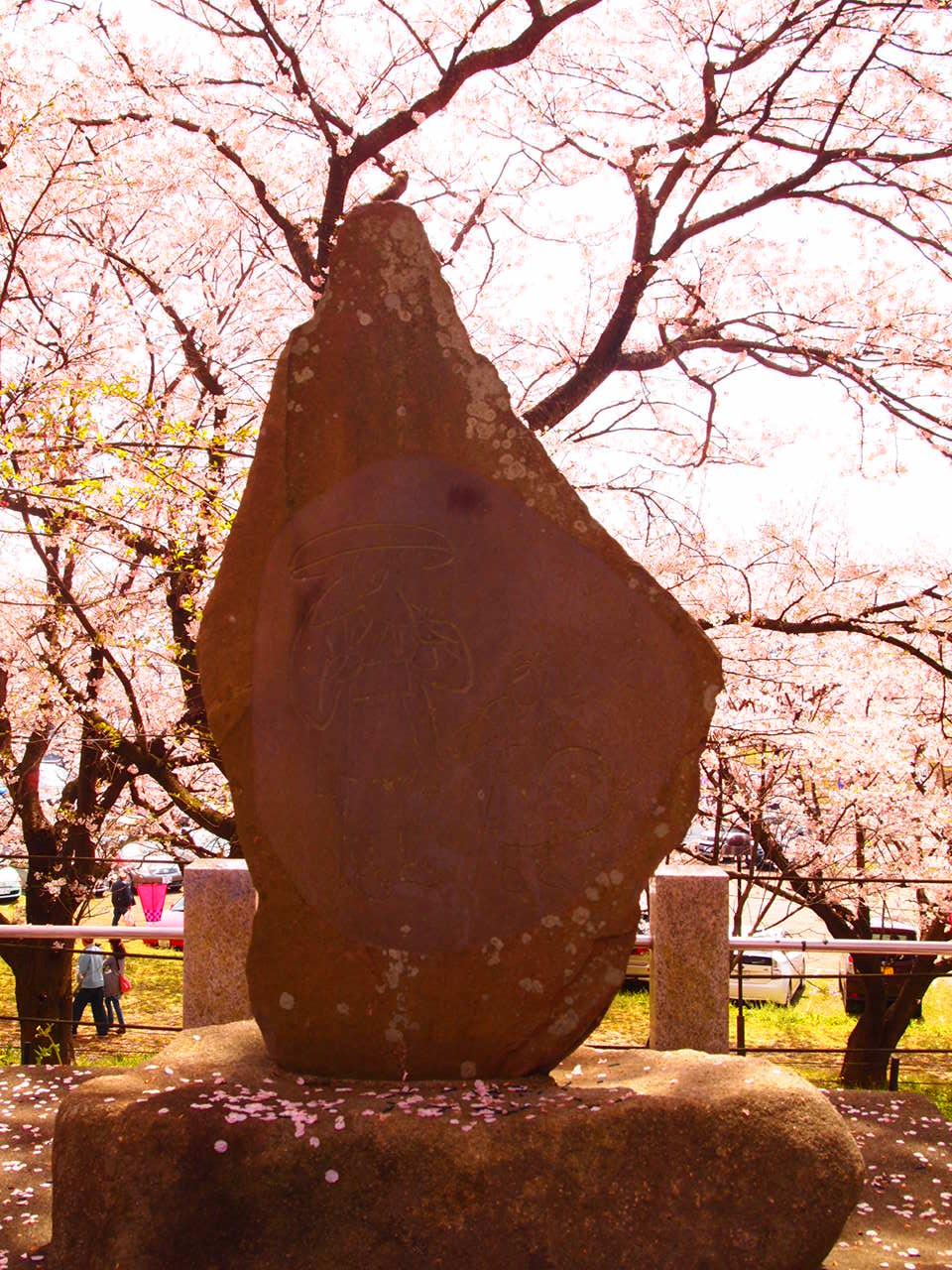 石の姿は、自然の造形美が活かされ、鏡のように磨かれた円形の面にはあどけなさを残した少女と優しげな母という2人の順礼親子の姿が刻まれています。
