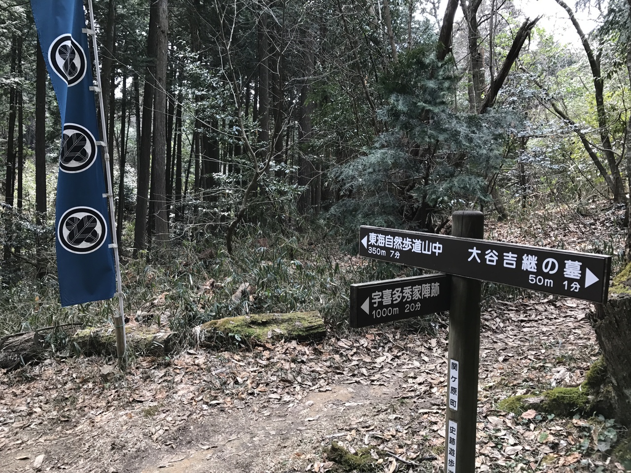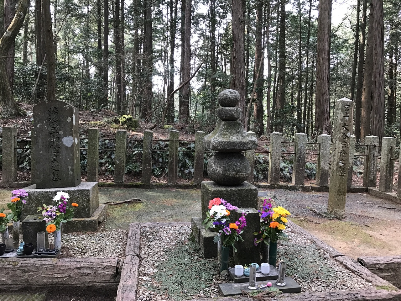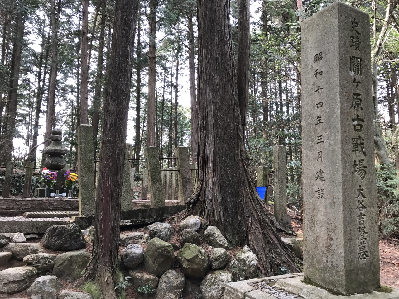 大谷吉継の墓は、大谷吉継の陣跡からすぐ側、徒歩1~2分程の鬱蒼とした山中にひっそりと建っていた。傍らには、湯淺五助の墓が並んでいた。