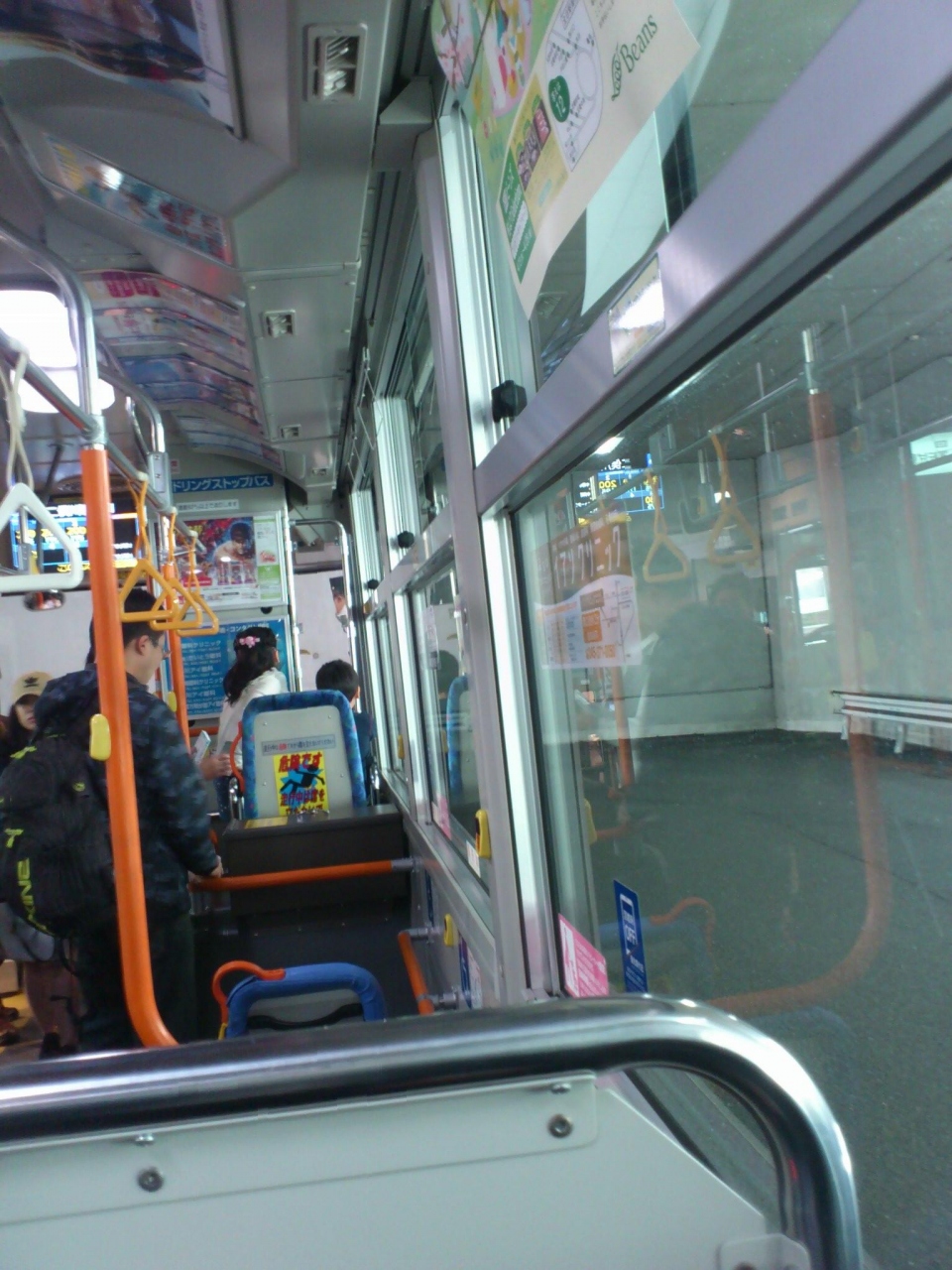 神奈川県の運転免許場へ行くために、二俣川駅から乗車しました。二俣川からだと登りになるので、行きはバス、帰りは徒歩でした。日曜日の運転免許の更新だったので、かなり多くの方がこのバスに乗車してきました。バスとしては、ごく普通のバスです。