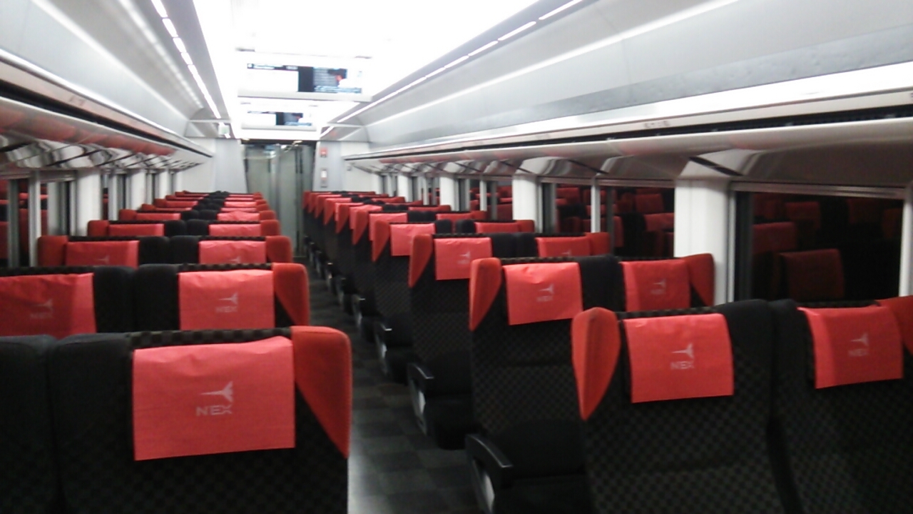 かつては普通車の場合、特急車両であるにも関わらず4人掛けボックスシートとなっていて、JR西日本の関空特急「はるか」よりはるかに車内のレベルが低いと思いましたが、259系になってからは2人掛けのリクライニングシートになっただけでなく頭の部分には枕が付き、ひじ掛け下にはコンセントが装備される等、同日時点では関空特急「はるか」より車内のレベルが良くなり、快適な移動をすることが出来ました。
