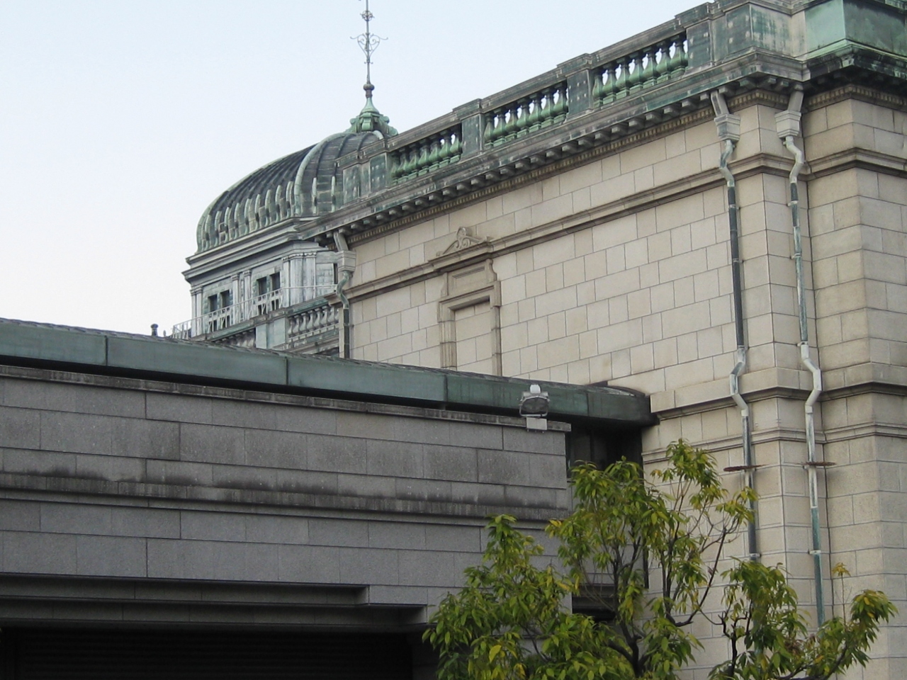 御堂筋に面して中之島の大阪市役所の真ん前に堂々と建つ近代建築、緑青の色が美しい円屋根が印象的なレンガと石造りの建物です。設計は東京駅や中央公会堂を手掛けた辰野金吾によります。設計者によって時代が変わっても残る偉大な財産となります。この地は江戸時代に島原藩蔵屋敷があり、明治時代は関西財界の五代友厚の別邸があったそうです。土佐堀川縁の舗道からと淀屋橋からの眺めが最高です。