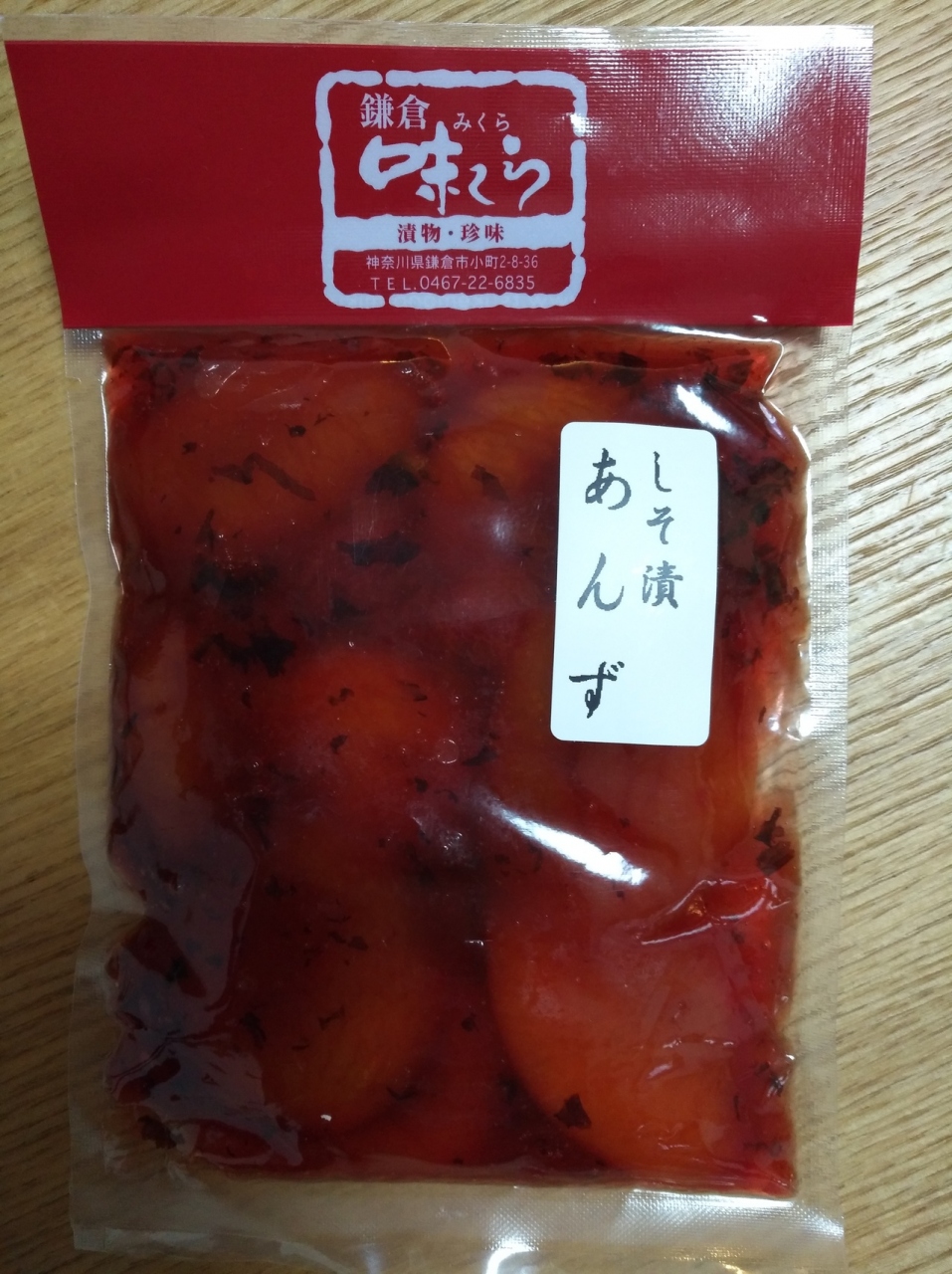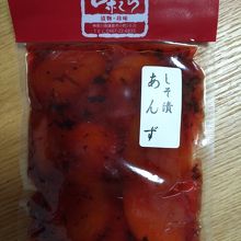 いろいろと試食をさせてもらい、しそ漬あんずを買って帰りました。しその味は強くなく、あんずの甘味が引き立っているお漬物です。他にもなすやべったら漬など総じて美味しいお漬物でした。次回は別のお漬物も買ってみようと思います。