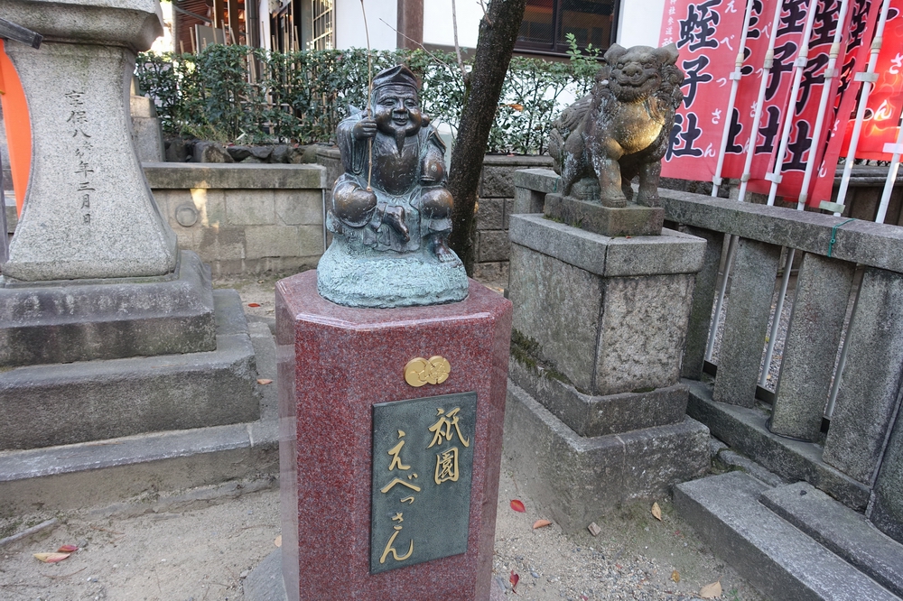 祇園のえべっさん として信仰されている八坂神社の末社。商売繁盛の神様として知られています。末社とはいえ歴史は結構古く、平安時代からここにあったといわれていて、1646年(江戸時代)造営の社殿は重要文化財に指定されています。