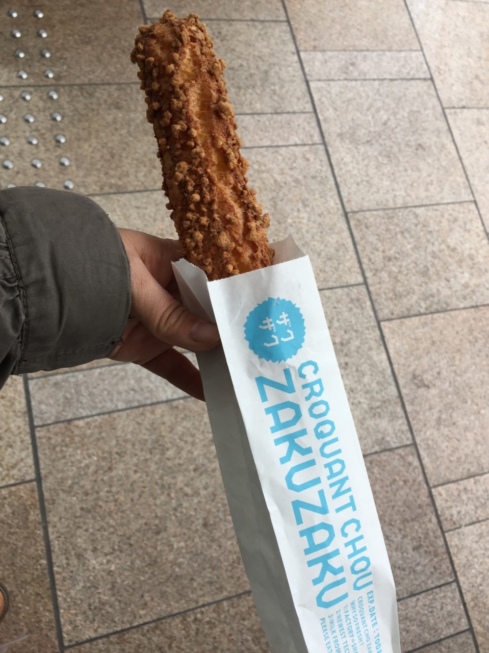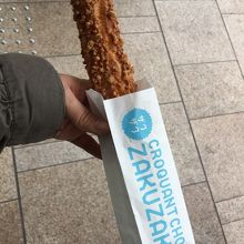 長細いシュークリーム。表面にクランチがたくさんついており、名前のとおりザクザク食感です。行列が出来ていて気になったので並んで買いました。味は不味くはないですが普通で、私はあまり好みではなかったです。中のクリームは端まで入っておらず、少なく感じました。