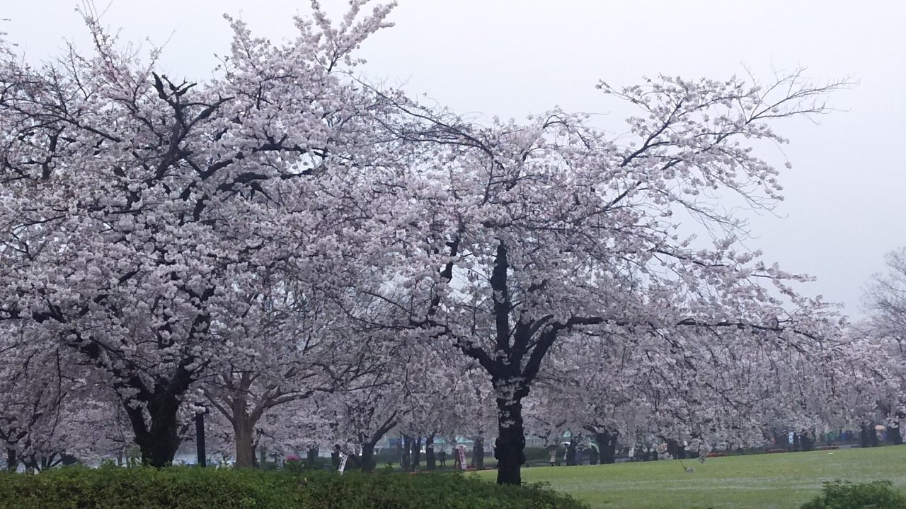 途中から雨が降ってきたのですが、屋根のある無料休憩所があり、そこで雨宿りしながら桜を見つつ、食事もできたので助かりました。