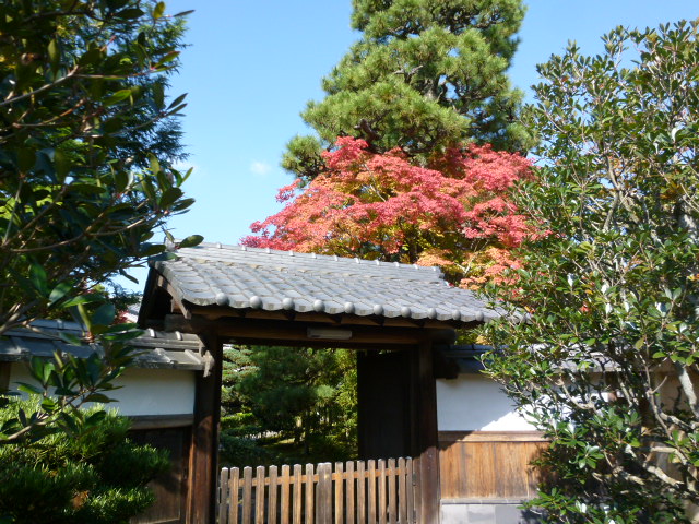 門構えには色付いた紅葉が。そして徳雲院へ続く石畳そして両脇には土塀が一直線に延びています。この風景は印象的で都会にない小路ですね。