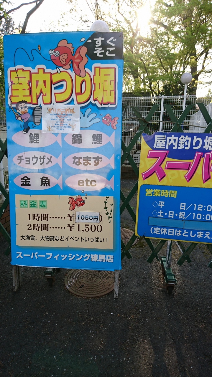 としまえんは年に数回いきます。遊園地、夏はプール、温泉の他にもフィッシングがあります。遊園地は夕方で終わってしまいます。ディズニーランドの感覚でいるとビックリします。今回は近くのトイザらスに用事があったので釣りをしてみました。一時間でも満足。一時間1000円