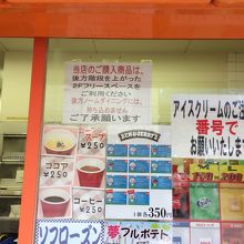 座って食べる場所がないので、お店前にあるフードコートの2Fを利用して下さいと張り紙がしてありました。
