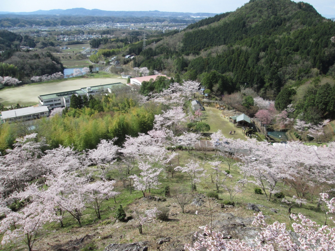 蘭丸がいた城址が、桜に飾られていました。小高い丘の斜面を散策しながら、頂上へ。頂上には東屋があり、眼下の桜景色を一望できます。さらに上に登ると、本丸跡までいけます。蘭丸が使った井戸の跡なんかもありました。桜を見ながら歴史を感じさせてくれます。
