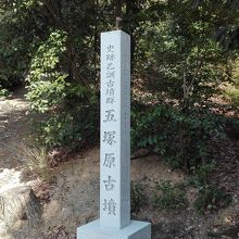 訪れてみると五塚原公園があり、この公園の奥(東側)に「五塚原古墳」の石碑が設置され公園出入口付近には古墳の経緯などの案内板がありました。