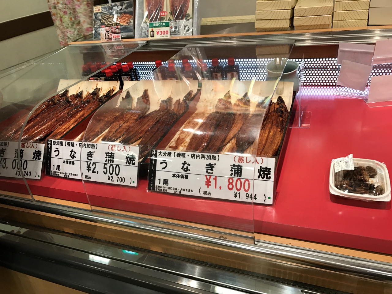 個人的におすすめなのは鰻のテイクアウト。愛知や大分等産地別に取り揃えていて、焼き方は関東風の蒸したタイプ。タレの具合がちょうど良く、関西ではなかなか見つけられないかも。