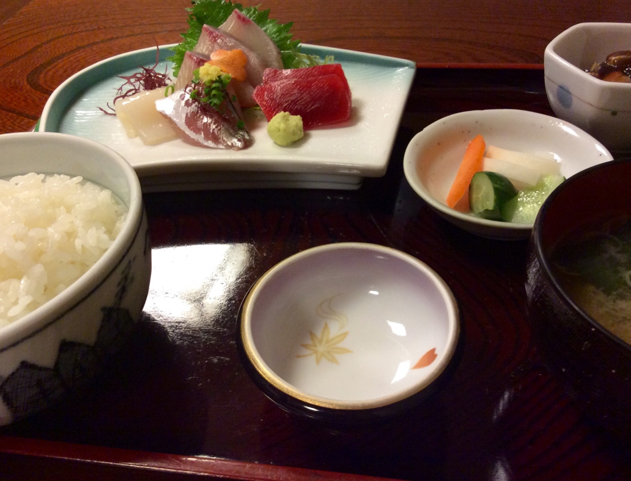 メニューにあったお刺身は売り切れ状態で、定食の分しか残っていないとのこと。ランチでなくなってしまったのでしょうか。ということで刺身定食を頂きました。少ないように感じましたがお値段なりだと思います。