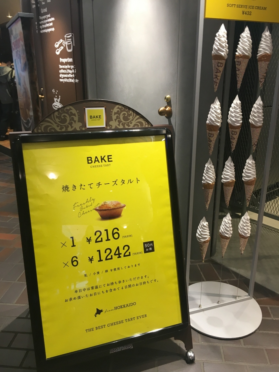 イクスピアリの中に入っているチーズタルトが有名なお店です。基本的にはこちらのお店はテイクアウトのみです。ですがソフトクリームも売っているので、近くのベンチで食べている人も見かけました。今回はチーズタルトのテイクアウトをしました。少し待ちましたが、原宿ほどではないので穴場かもしれません。