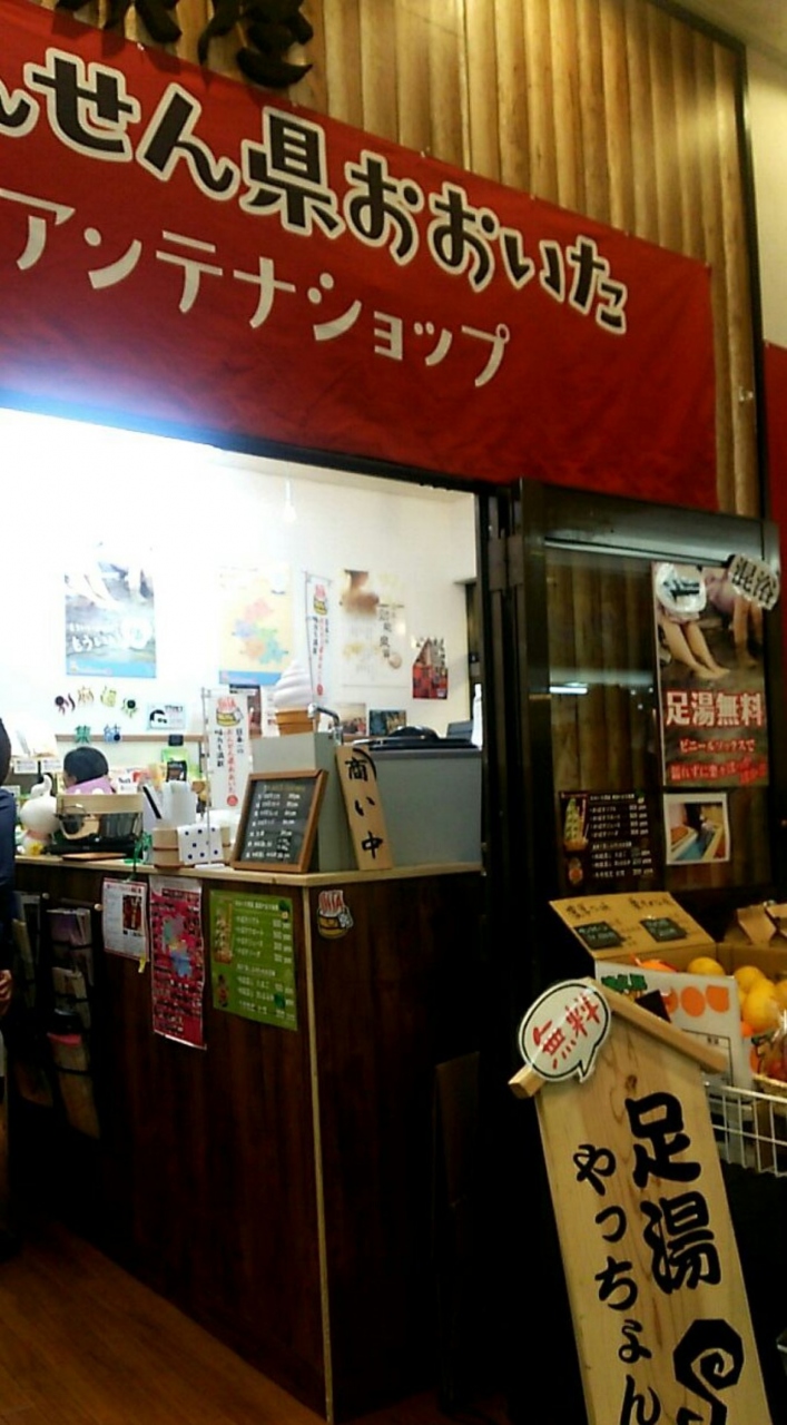 有楽町駅前の東京交通会館(地下1階)にある大分県のアンテナショップです。東京交通会館には、各都道府県のアンテナショップがありますが、その中でもいちばん狭いショップだと思いますが、ショップ内には無料の足湯があるため、これを目的に立ち寄るのもオススメです。