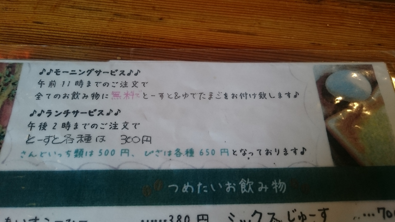 そして朝11時までは、すべての飲み物に無料でトーストとゆで卵がつくモーニングサービスをやっていました。