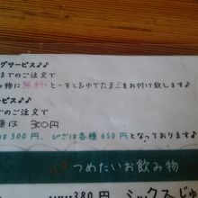 メニューを見ると飲み物がたくさんあり、どれもリーズナブルな値段!