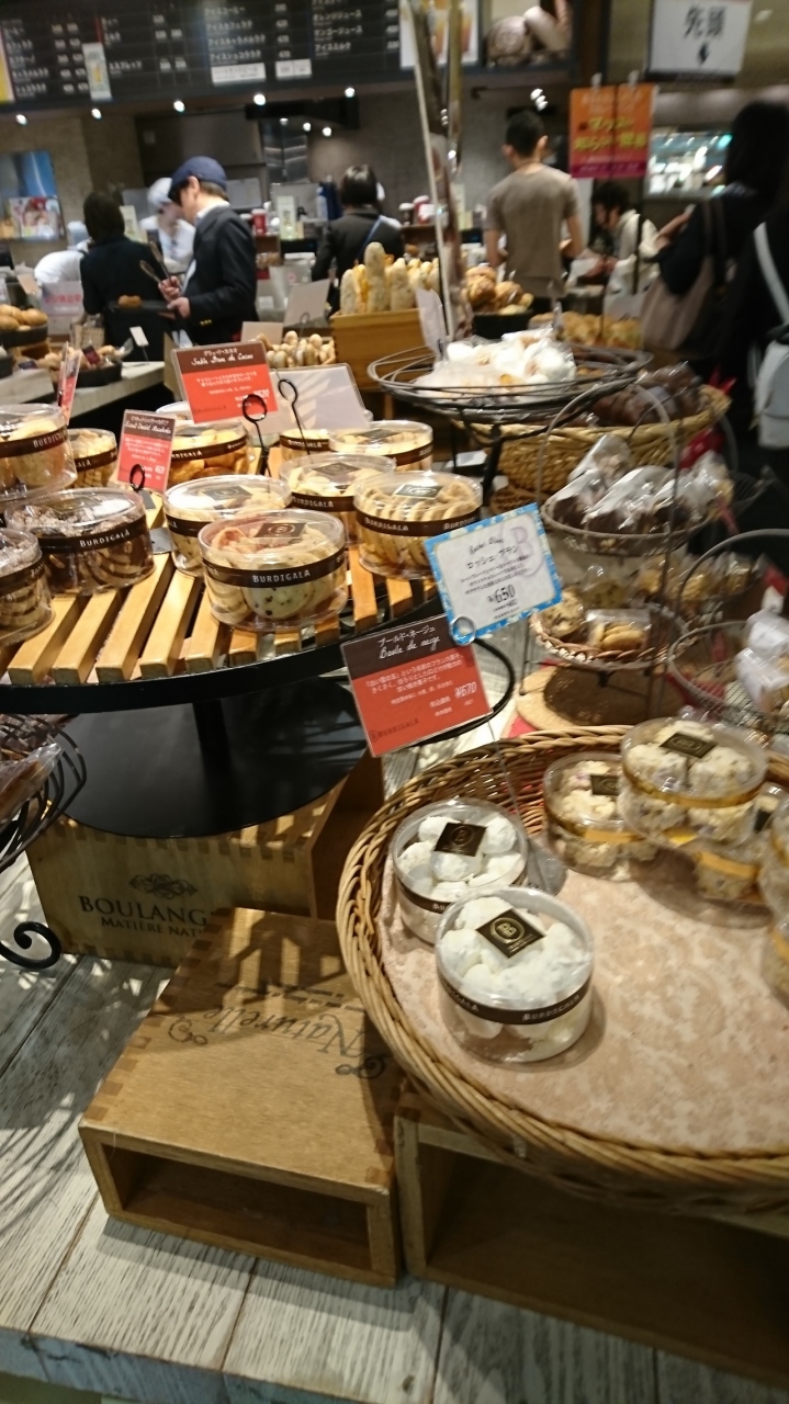 東京駅構内地下のグランスタにあるベーカリー兼カフェ。店員さんはベレー帽をかぶっています。お店の中には、いろいろな種類のパンが並べてあり、どれも美味しそう。ただし、どれも200円以上で少し高め。3種類購入したら800円でした。調理パンよりも菓子パンに近いパンの種類の方が豊富。味はその分悪くはないですが、財布には少し厳しいので、出張の際のご褒美かな。昼時は結構並びます。