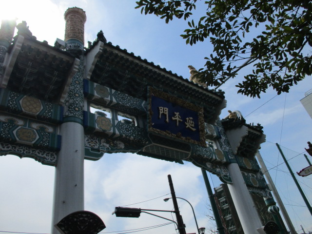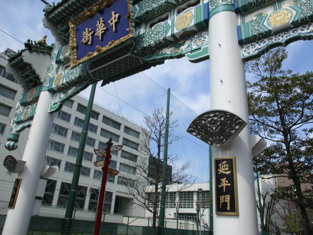 JR根岸線石川町駅北口から首都高速神奈川1号横羽線沿い通り市立港中学校のそばの交差点を渡ると延平門に着きます。延平門は横浜中華街の西側に位置するさわやかな白い門柱が魅力的な門です。横浜中華街は10個の門がそれぞれ個性がありますので散策の時は中華街門巡りをお奨めします。