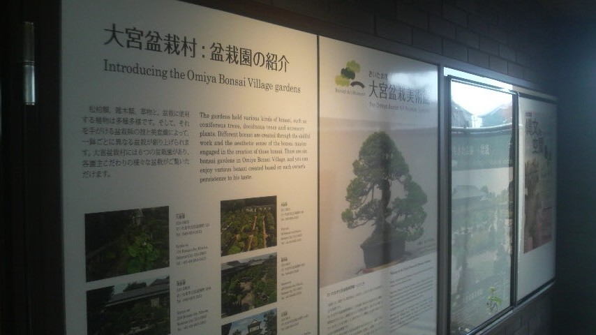 (駅の待合室に盆栽村の説明や案内が出ていました)