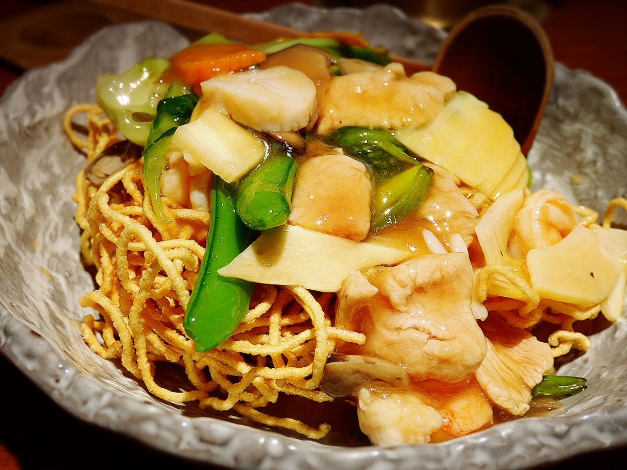 パリパリに揚げられた焼きそばも美味しく、上品に味付けされたあんかけと良く合います。