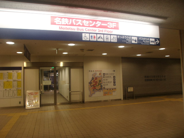 今回は、名駅傍からの深夜高速バスにて関東を目指す旅程でしたので、実家の最寄りから名駅まで向かう際に、バスセンター終点のバスに乗車して、夜間閉鎖間際の名鉄バスセンターに立ち寄ることが出来ました。いつも見慣れた常に人混みで賑わっているバスセンターの雰囲気とは異なり、特に4Fは照明まで落とされていて(そのくせ、4Fに向かうエスカレーターはまだ動いていた…)、もう、本日分の全てのバスが出払ったんだなあと実感させて貰えました。最後には、待合室で閉鎖を告げる警備員に起こされるおっさんの姿なども眺めることが出来て、いつもと違う名鉄バスセンターが堪能出来て、ちょっと得した気持ちになりました。