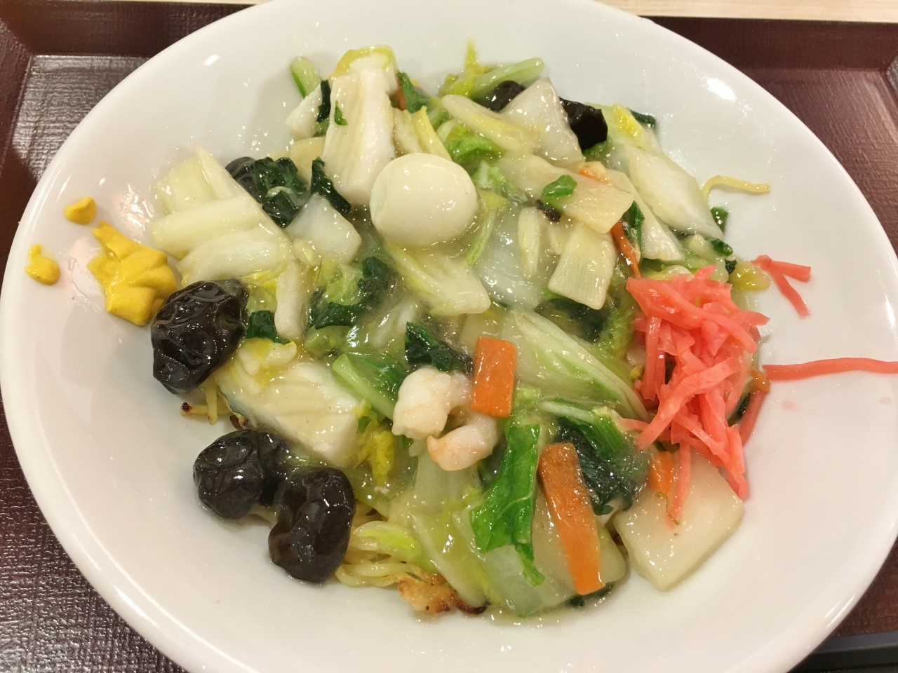 海鮮塩あんかけ焼きそば(\690)を注文しました。プリプリのイカや野菜がたっぷり入っていて美味しかったです。この価格でこの味なら満足できます。気楽に利用できるお店です。