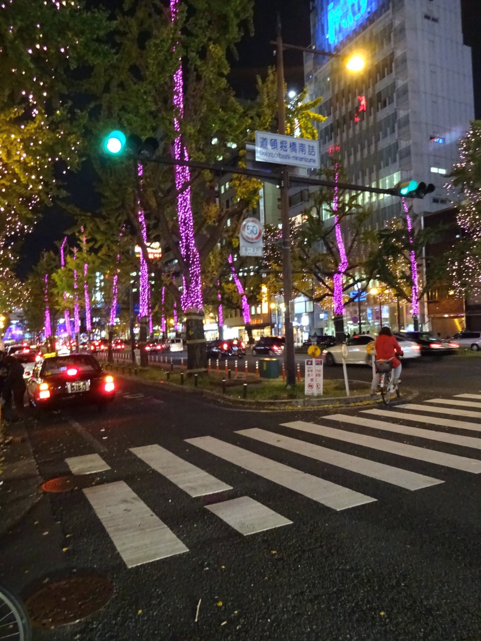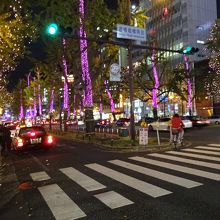 御堂筋の全てではないが、かなりの区間がライトアップされている。