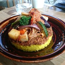 ドライカレーを注文。具だくさんで盛り付けもキレイで嫁も喜んでいました。