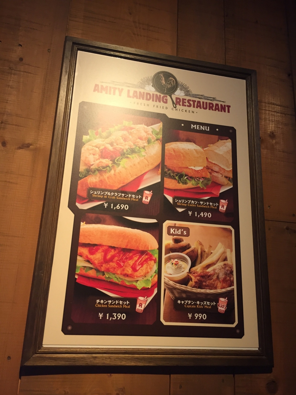 ランチを頂きました。早い時間帯に行ったので割と空いていたと思います。シュリンプカツサンドセットを注文しました。ジョーズのエリアにあるレストランなのでフィシュ系が豊富かと思ったらエビの方がメニューにありました。食べごたえは十分。お値段はUSJ価格です。