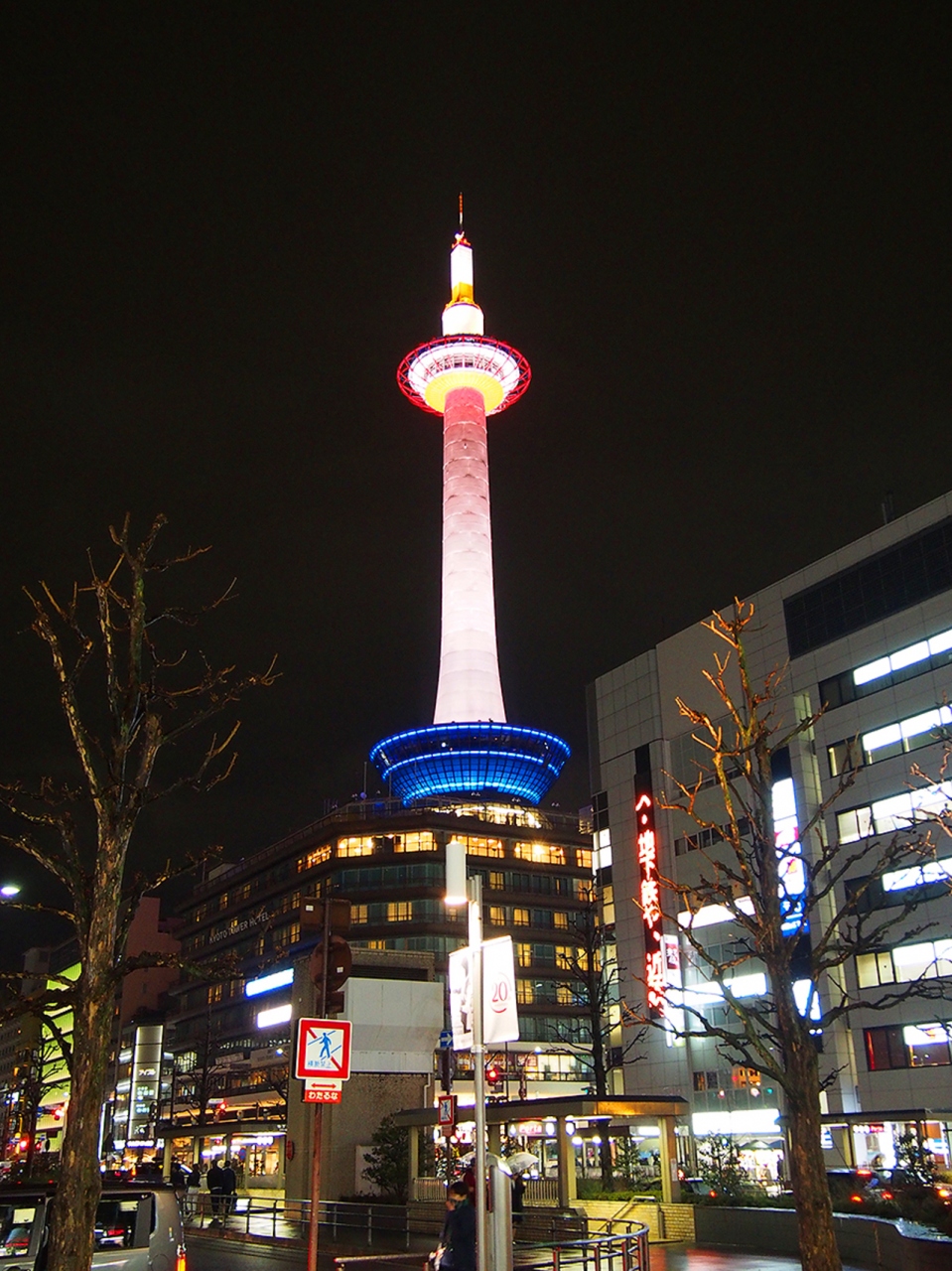 京都駅を出るとすぐ見える、京都駅前のランドマーク的建築物の京都タワーです。