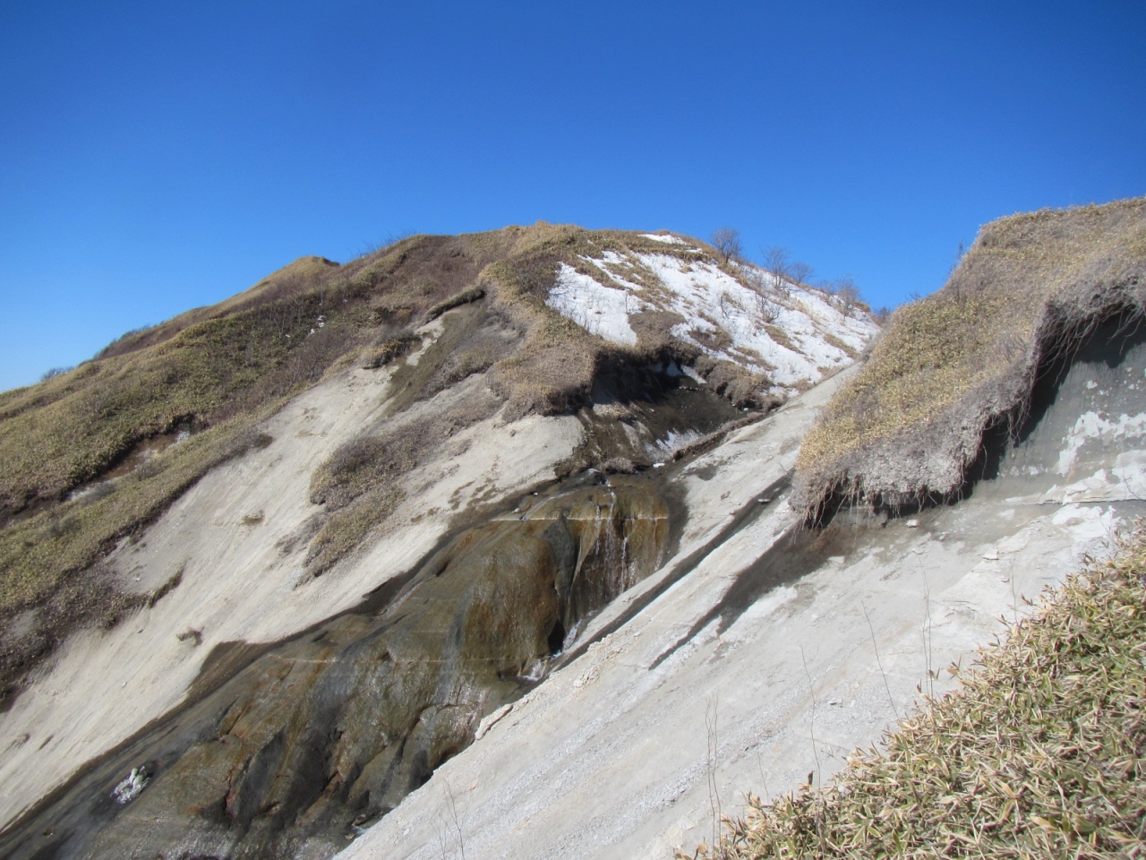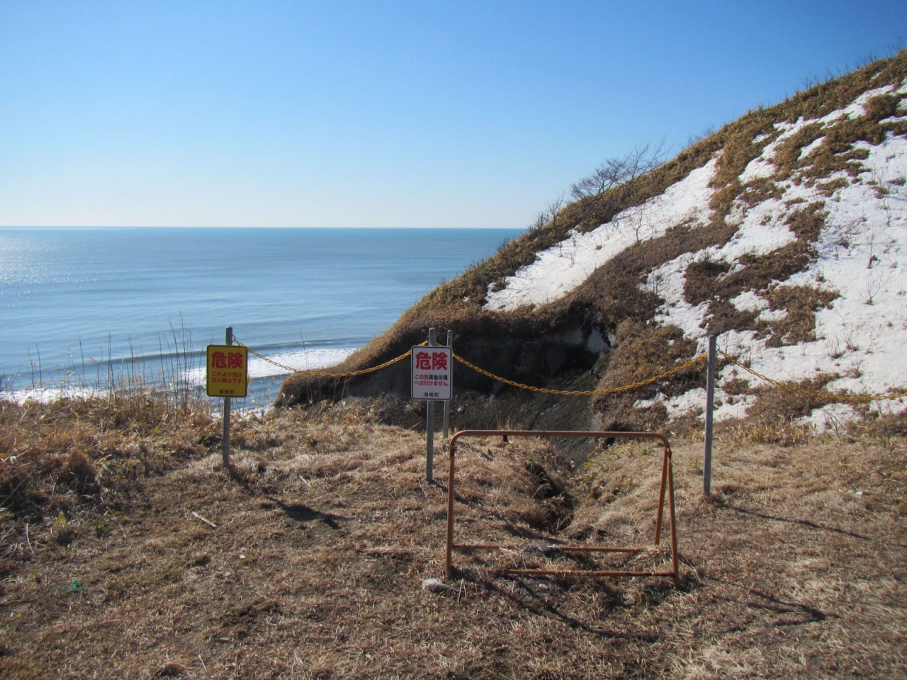 秘境駅で有名な小幌駅の海岸まで下りる道くらいの傾斜で、雪は解け、藪がまだ枯れている3月下旬の頃は下りやすかったです。