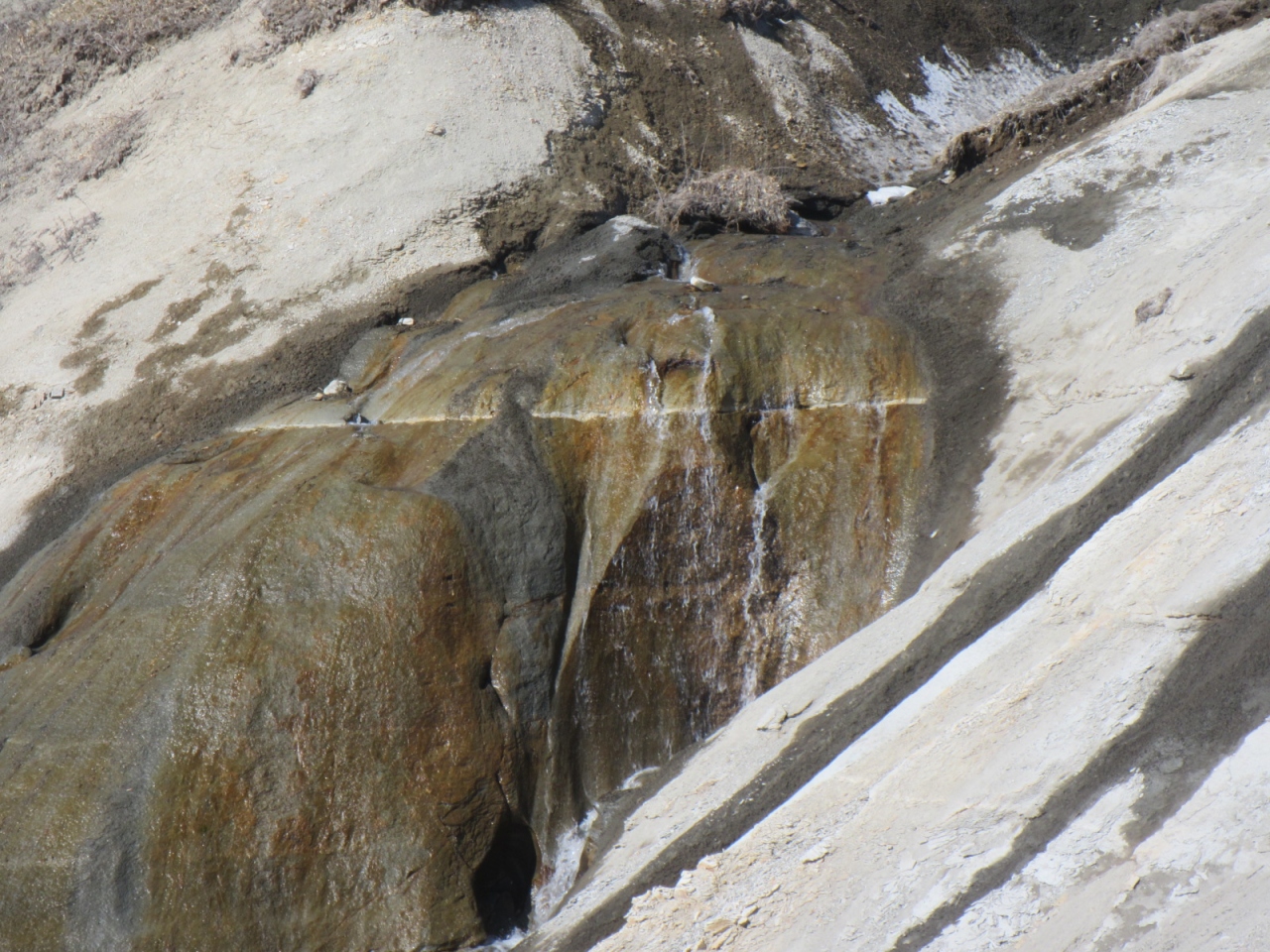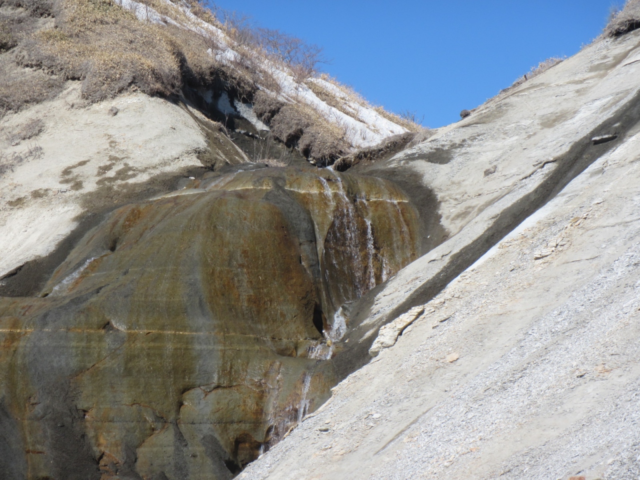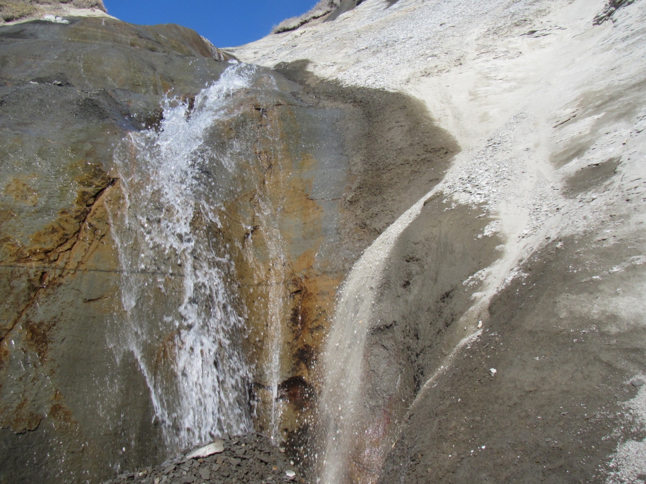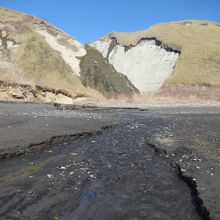 結構、もろい地形のようで、時々、水と一緒に砂も滝のように流れ落ちてきていました。
