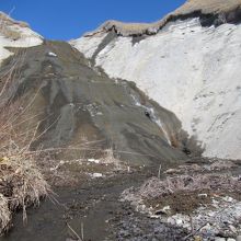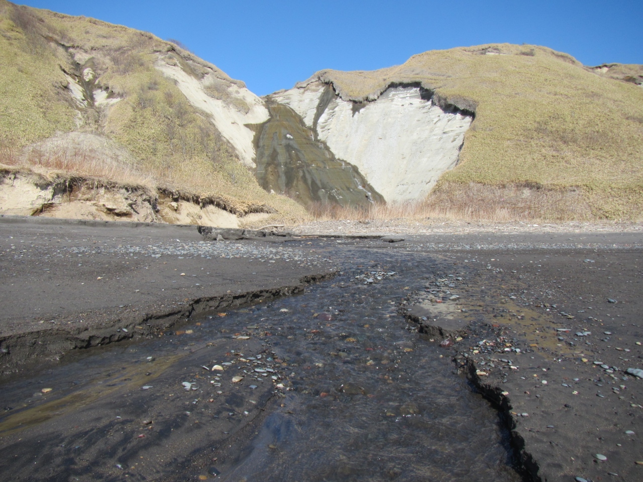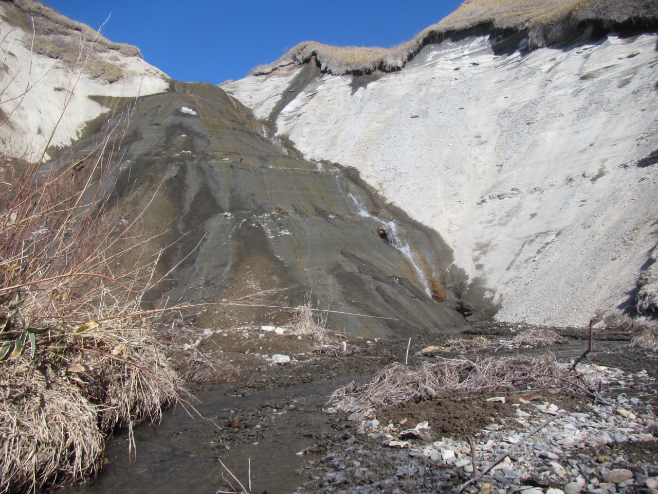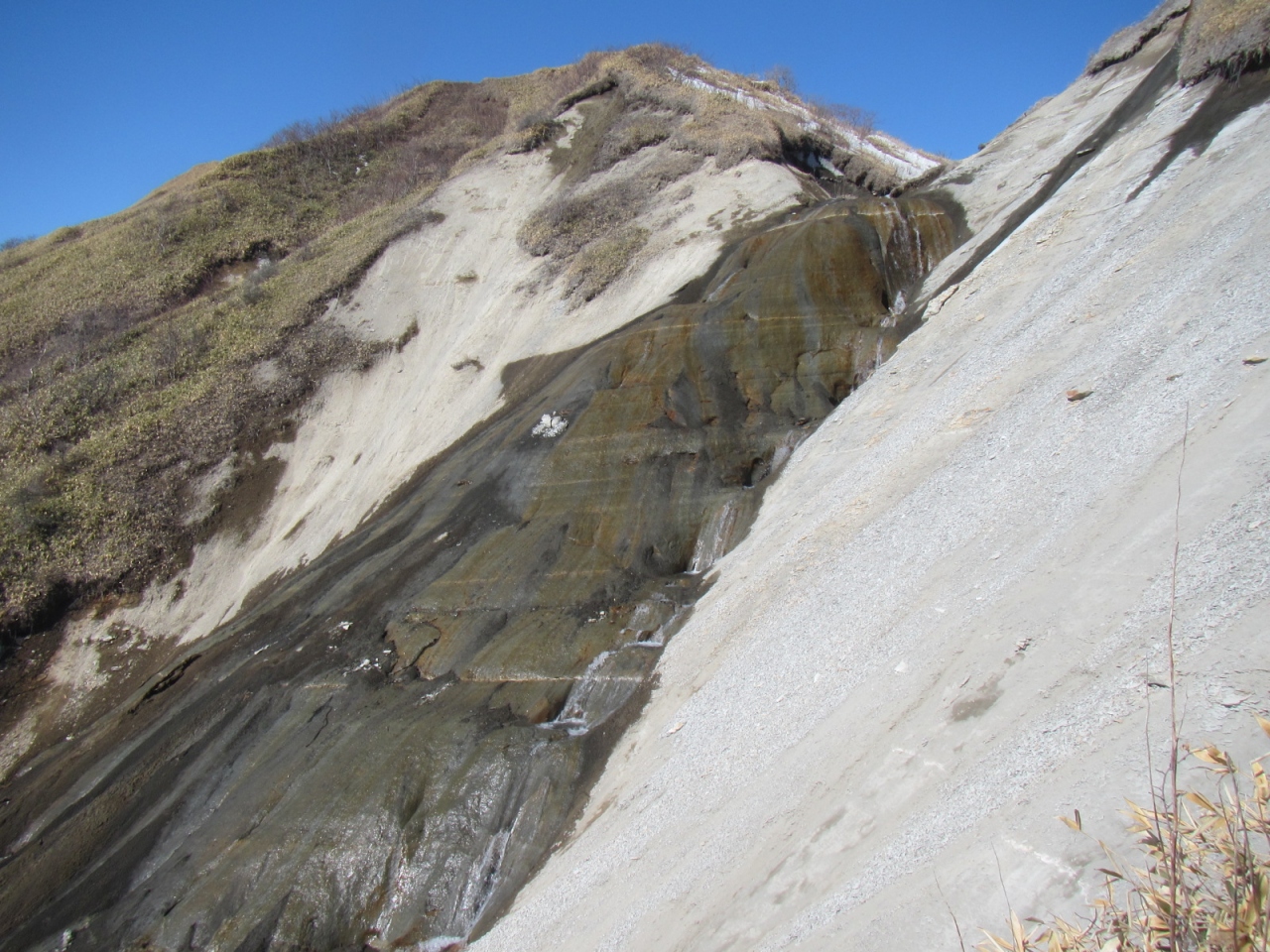 結構、もろい地形のようで、時々、水と一緒に砂も滝のように流れ落ちてきていました。