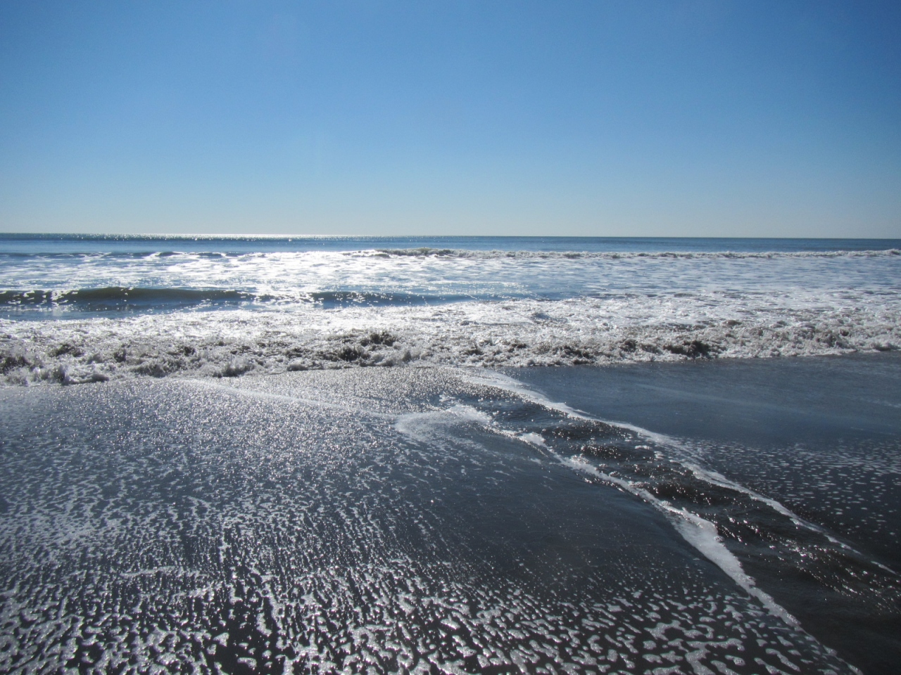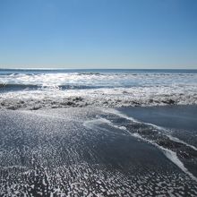 水の作用による崩落箇所から十分に離れて、草藪を滝の左岸に出ると、けもの道のような踏み跡のジグザグ道があり、そこから浜まで安全に下りていくことができました。