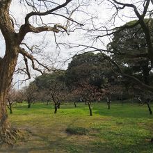 浜離宮恩賜庭園の旧稲生神社の先から水上バス発着所に掛かる一帯が梅林です。約80株植わっているそうです。3月末に菜の花畑を見る目的で行ったのですが、梅の花も未だ咲いているかなと思い行って見ると、すでに時遅く、落ちた花の額が残っている梅がほとんど。ちょっとだけ花が残って居るものもありましたが、3月末ではだめでした。