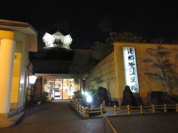 泊まった宿が湯郷にも拘わらずカラン4つしかない風呂場で、数名のグループに占領されてしまうことから、湯郷鷺温泉館まで来ました。夜だったこともありますが、駐車場からの出し入れするクルマにぶつけられないように注意が必要です。