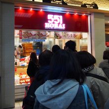 京都の新幹線乗り場改札すぐの好立地にある、大阪土産で大人気の豚まんです。