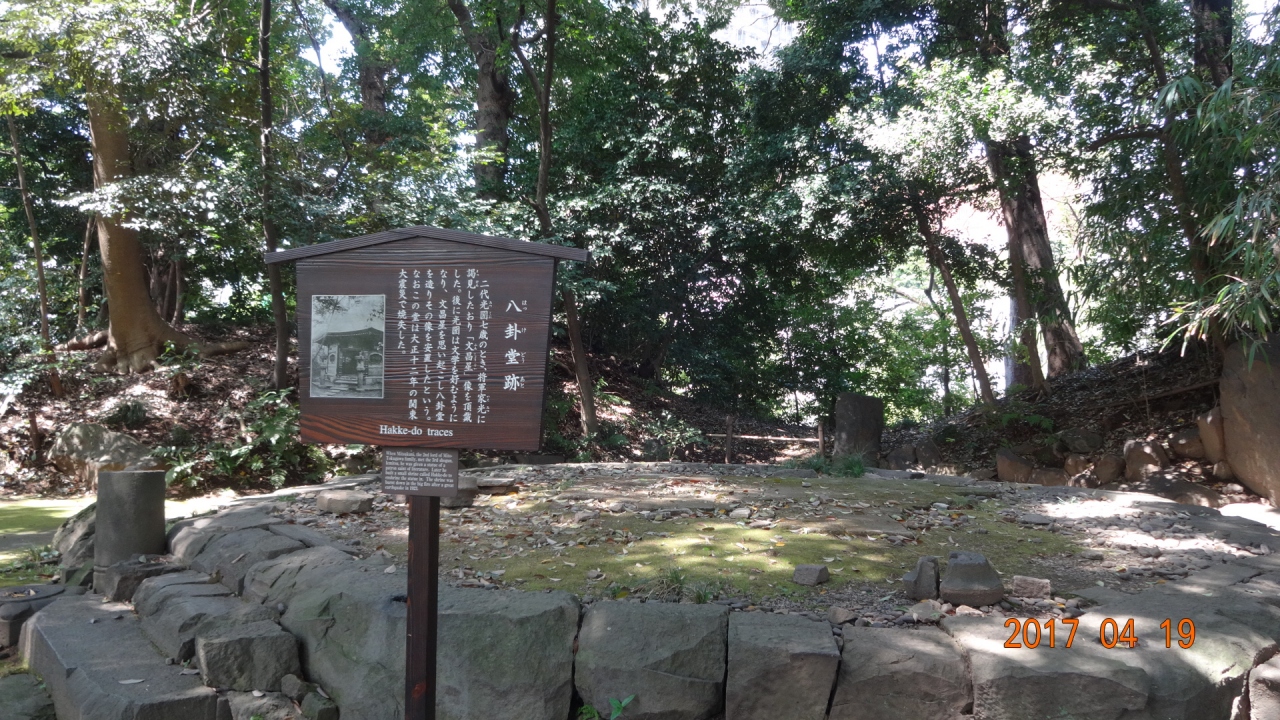 渡月橋から、クネクネした山道を歩いて得仁堂を通過、また山道風のクネクネした登り坂を歩いて、団体休憩所や円月橋を通過した後の小高い丘に八角堂跡がありました。