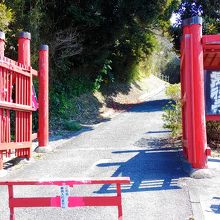 教えてもらった道を行くとコンビニの隣に駐車場があり、門がありました。