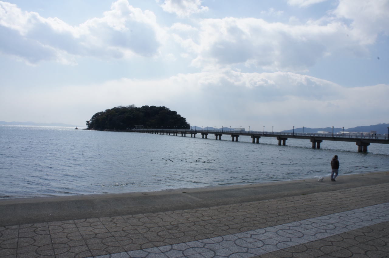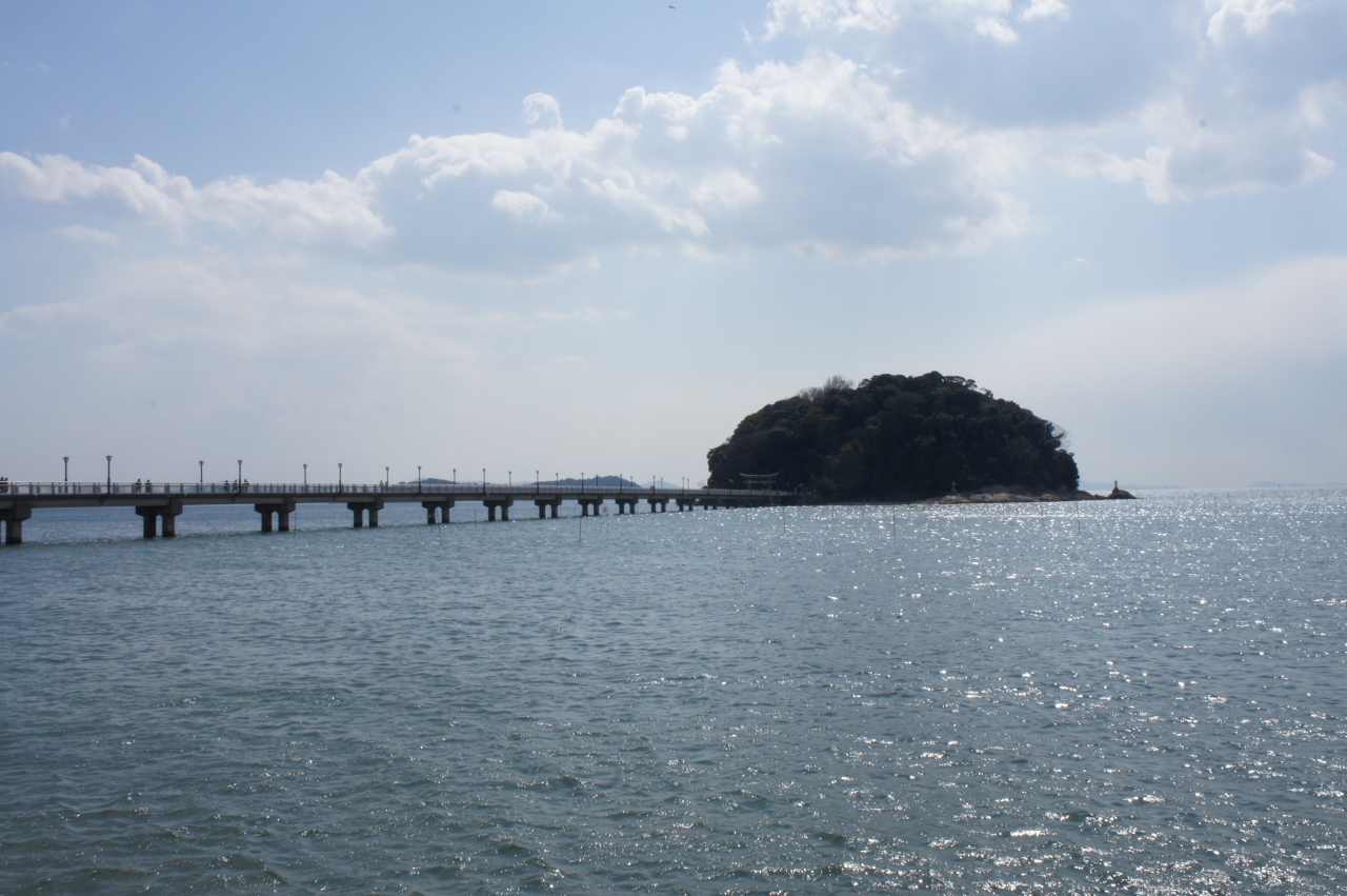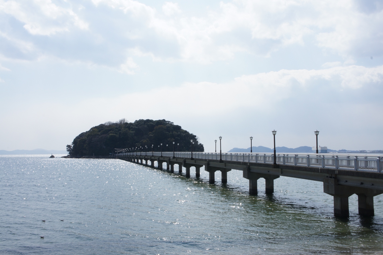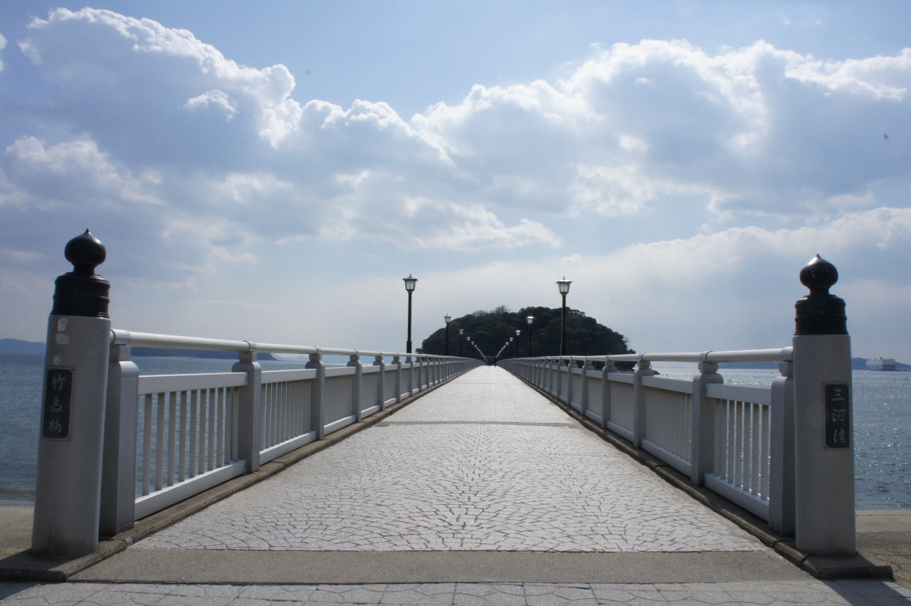 蒲郡観光でこの竹島を訪れました。竹島には渡らなかったですが、遊歩道から見る竹島とそれに架かる橋の景色は海の輝きと共に素晴らしい景色になっています。お昼過ぎでしたので、日が眩しかったですが、のんびりした気分で海の景色を見ていると、心が落ち着いて贅沢な感じさえします。竹島に架かる橋は見ようによっては女性的に見えたり、力強く見えたりするのが不思議です。橋を手前に大きく入れて撮影した写真はとても迫力があります。お勧めのスポットだと思います。