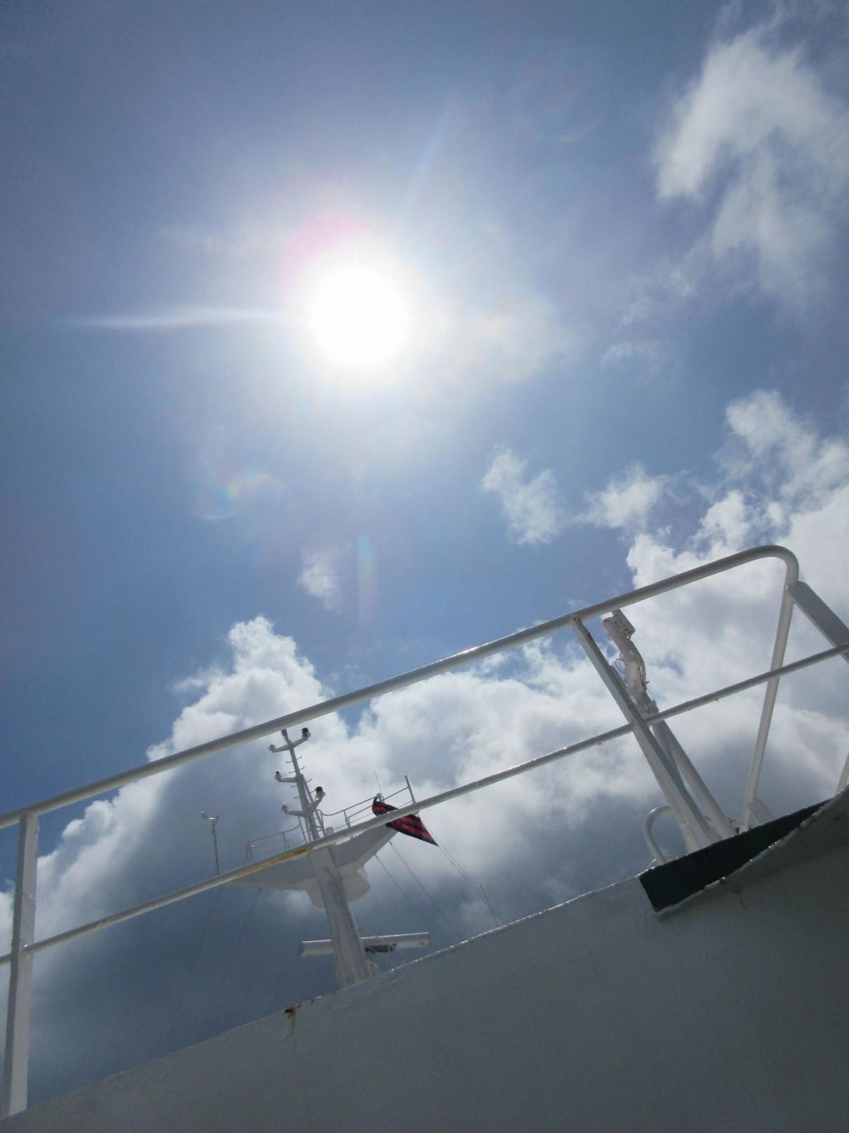 おがさわら丸の船旅は、ほかでは味わえない、独特のものがあります。1週間に一度の運行なので、往路で一緒だった人たちは、復路も一緒。行きは見知らぬ人たちばかりだったのが、帰りは顔見知りがいっぱい。宿で同宿、ツアーで一緒、ダイビングのバディ、などなど。デッキで語り合ったり、レストランで食事したり、新しい旅仲間ができて楽しい船旅になります。これも船旅の魅力かもしれません。