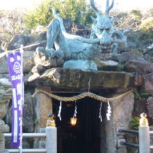 そしてこの龍宮は奥津宮はその左手にあります石造りの鳥居がありちょっとした参道もあります。