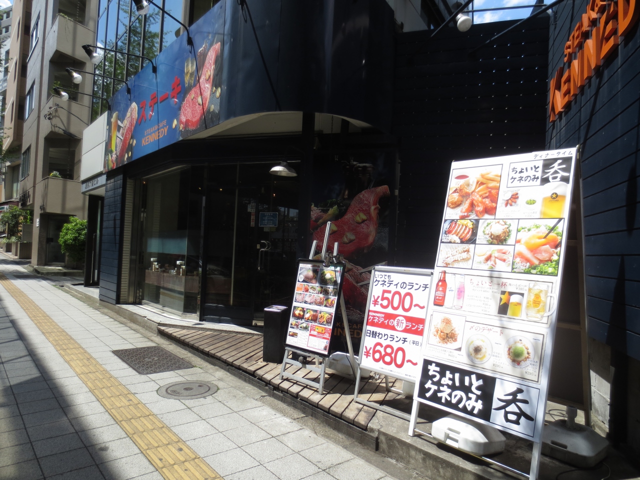 ステーキ専門店のケネディです。昼時はランチを提供していて、お得な価格でいただくことができます。ステーキランチも激安ですが、500円のワンコインでいただけるハンバーグがあったので、それにしてみました。大きさは150グラム。値段のわりには美味しいと感じました。ちなみにライスも付いてきます。サラダとドリンクが付いたランチセットは200円増し。今度はステーキにしてみようかな。