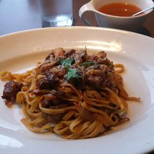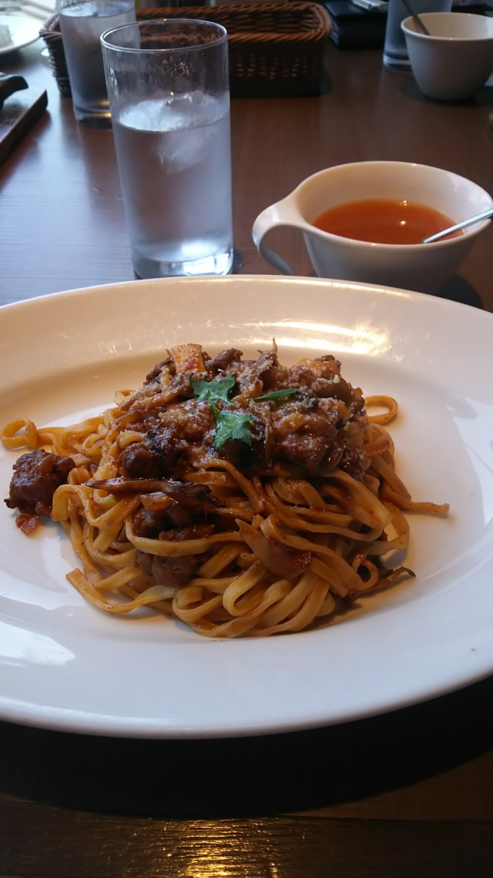 パスタは平打ち麺で、ソースには大きな肉の塊がごろごろ入っていて、食べごたえがありました。