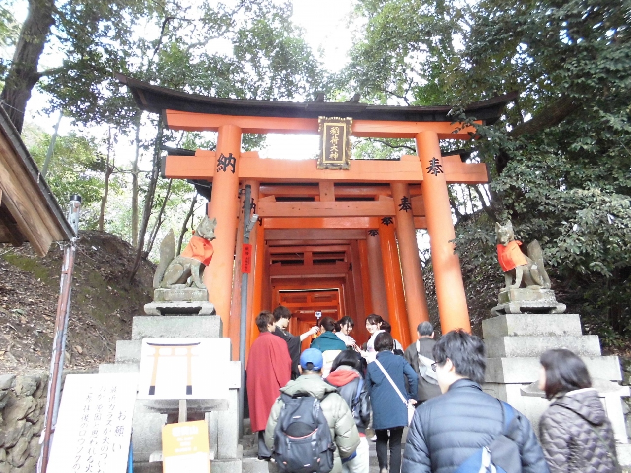 数年ぶりに行きました。京都駅から2駅でJRの稲荷駅からすぐなのでわかりやすいです。以前行ったときは人も少なくて静かな感じでしたが、今回行ってびっくり、平日でもすごい人でした。着物姿の外国人が多かったです。今、外国人に1番人気ある神社だということです。人気は、千本鳥居だと思いますが、前回も今回も途中までで断念しました。